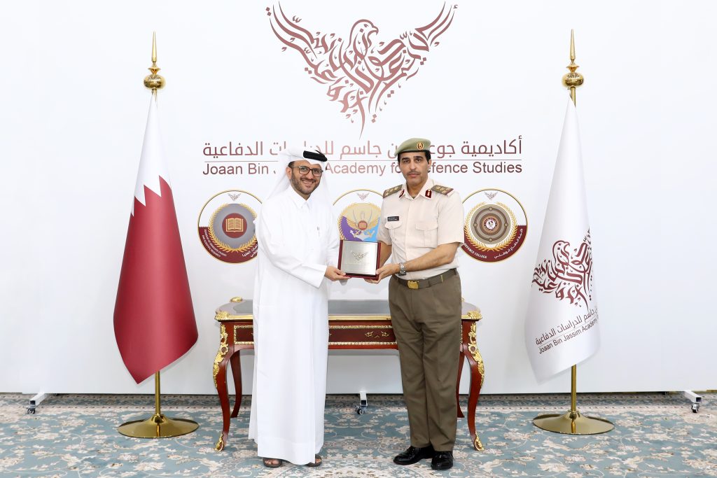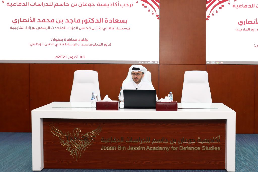 استضافت أكاديمية جوعان بن جاسم للدراسات الدفاعية سعادة الدكتور / ماجد الأنصاري مستشاراً لنائب معالي رئيس مجلس الوزراء ووزير الخارجية ومتحدثاً رسمياً لوزارة الخارجية وكان بالاستقبال العميد الركن (دكتور) / راجح محمد بن عقيل النابت رئيس أكاديمية جوعان بن جاسم للدراسات الدفاعية وبحضور قادة الكليات وعدد من كبار الضباط في الأكاديمية.