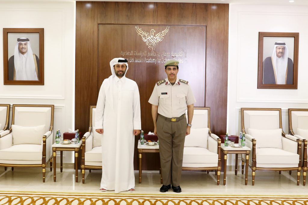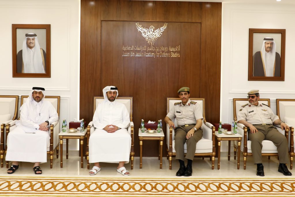 إستقبلت أكاديمية جوعان بن جاسم للدراسات الدفاعية سعادة السيد عبدالله بن حمد بن عبدالله العطية وزير البلدية الاحد الموافق 16/11/2025 وكان بالاستقبال العميد الركن (الدكتور)/ راجح محمد بن عقيل النابت رئيس أكاديمية جوعان بن جاسم للدراسات الدفاعية وبحضور قادة الكليات و عدد من كبار الضباط في الأكاديمية .