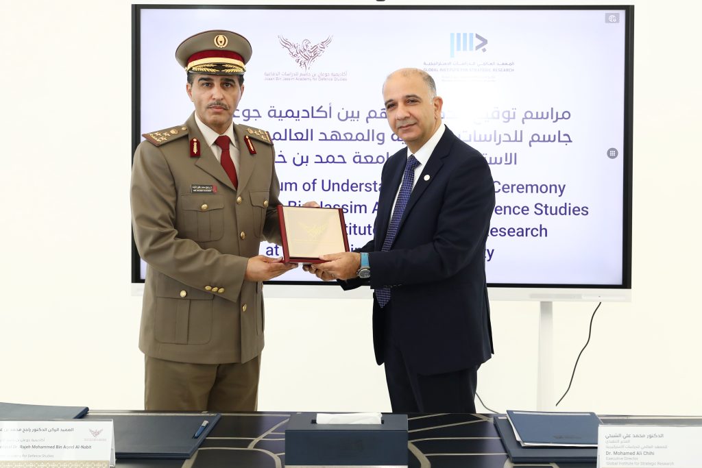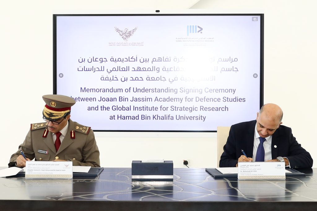 وقعت أكاديمية جوعان بن جاسم للدراسات الدفاعية والمعهد العالمي للدراسات الإستراتيجية بجامعة حمد بن يوم الأربعاء الموافق 03/09/ 2025م تهدف إلى تعزيز التعاون المشترك بين الجانبين.