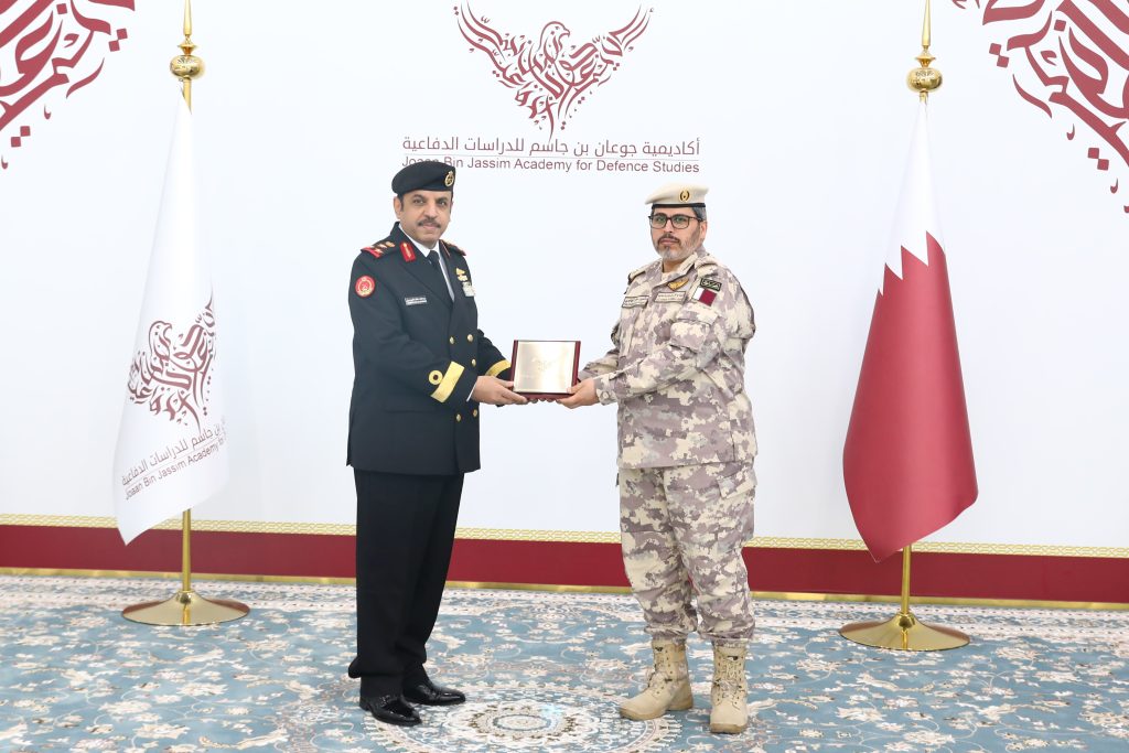 إستقبلت أكاديمية جوعان بن جاسم للدراسات الدفاعية العميد الركن (بحري) / عبدالله خلف الدوسري رئيس هيئة التعليم الكويتي الاربعاء الموافق 2025/12/24م وكان بالاستقبال العميد الركن سالمين مسفر الشهواني الهاجري رئيس أكاديمية جوعان بن جاسم للدراسات الدفاعية بالوكالة وبحضور قادة الكليات و عدد من كبار الضباط في الأكاديمية.